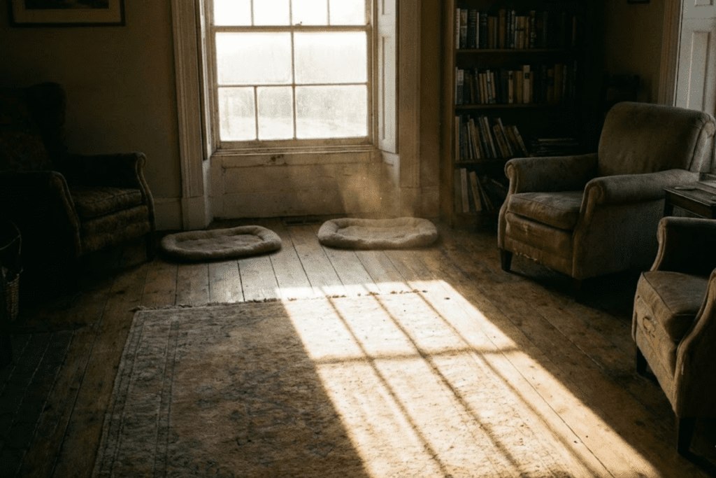 Not peaceful quiet. Not the kind you choose. This was a hollow quiet, the kind that presses against your ears and makes you aware of every empty corner. I lay still, staring at the ceiling, waiting for the familiar sounds that never came. No nails clicking down the hallway. No heavy sigh from Milo shifting his weight. No soft thump of Bruno jumping off the couch to follow me.