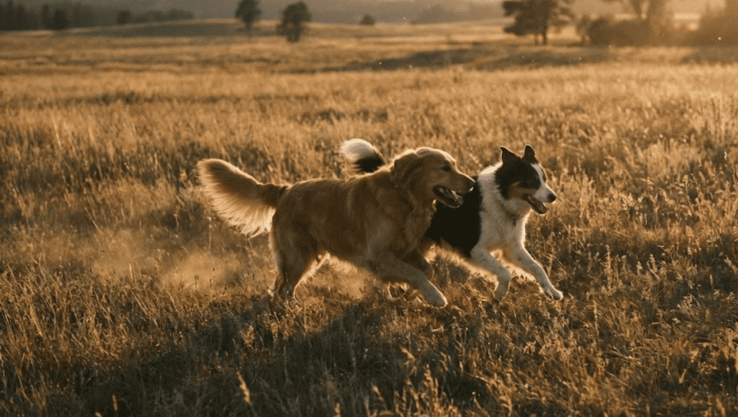 Milo was running again, legs strong and steady, ears flapping like they used to when he was younger. Bruno chased him, barking joyfully, not the strained sound from his final days but the full, reckless bark of a dog who feels nothing but life.
