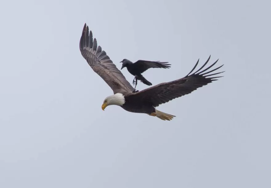 So, there’s this super talented photographer named Phoo Chan, who’s made a name for himself in the photography world. He’s managed to capture some mind-blowing shots of a crow hitching a ride on the back of a soaring bald eagle. It’s a jaw-dropping sight, and it’s the star of our show today.