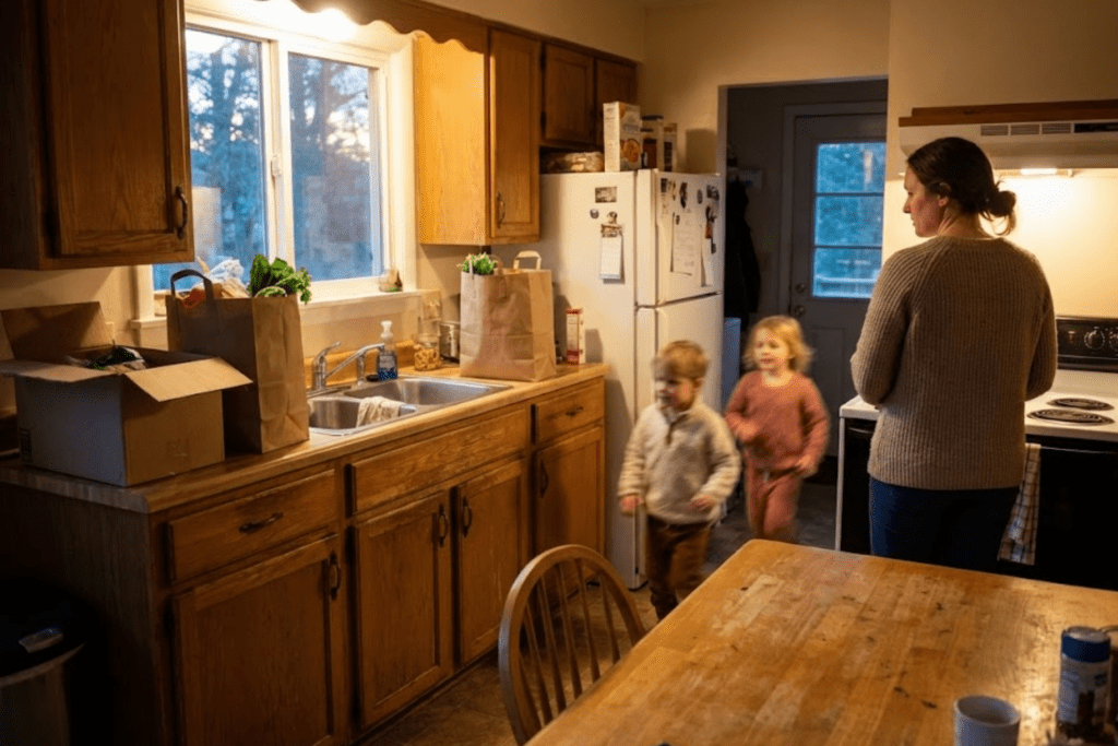 After she left, I stood in my kitchen staring at the bags lined up across the counter. My hands were shaking. The kids were already asking what we could make for dinner.