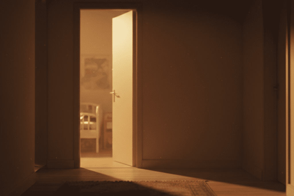 The lights are low. The dishwasher hums in the kitchen. Down the hallway, I can hear her breathing through the thin crack of her bedroom door. It is steady now, no longer the shallow, alert rhythm she had when she first arrived. Sleep came gently tonight, as if it finally felt safe enough to stay.