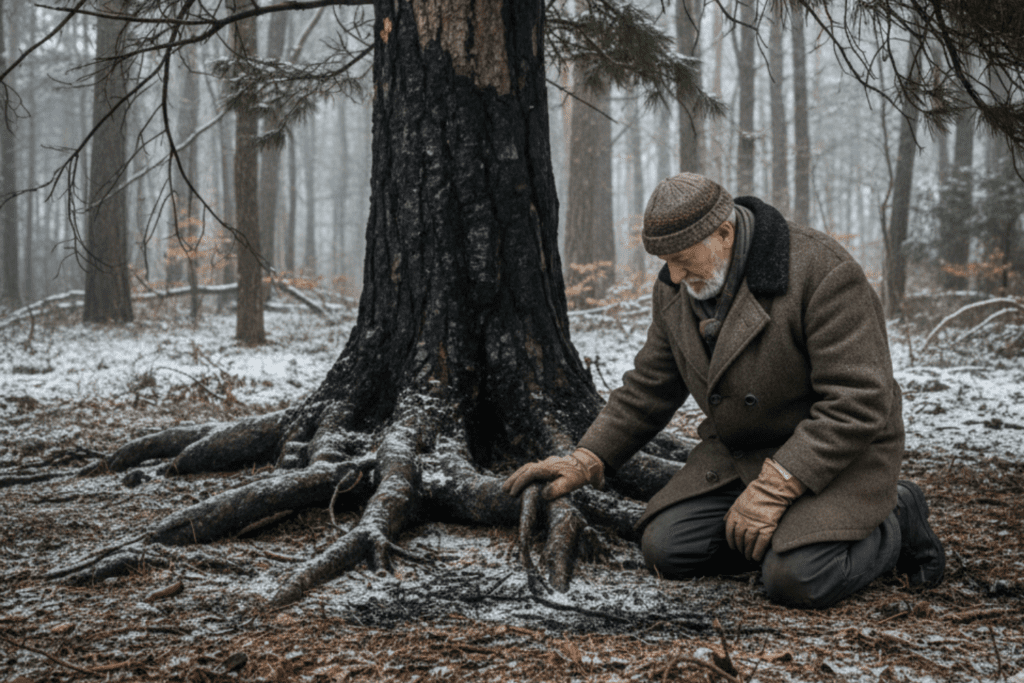 Will knelt with difficulty, lowering himself to the frozen earth. His hands trembled, not just from age, but from recognition. The tree was older now. Scarred, but alive. Just like him.