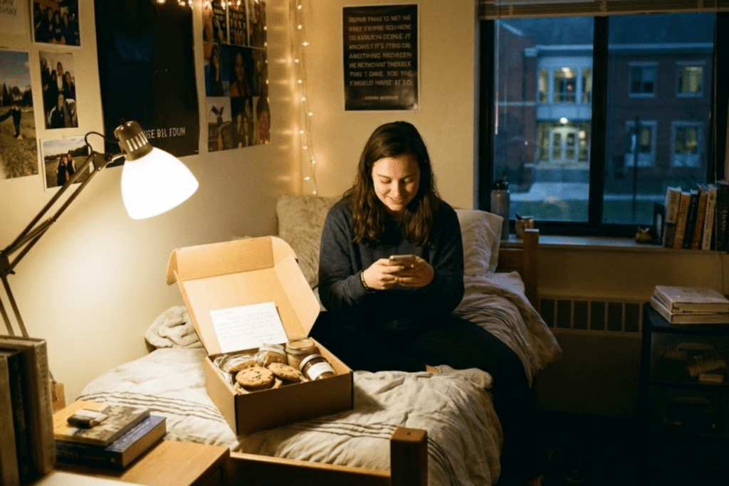 “Dining hall food is technically edible,” she wrote, “but nothing tastes like home. Thank you for teaching me what normal feels like. I’m trying to build that here.”