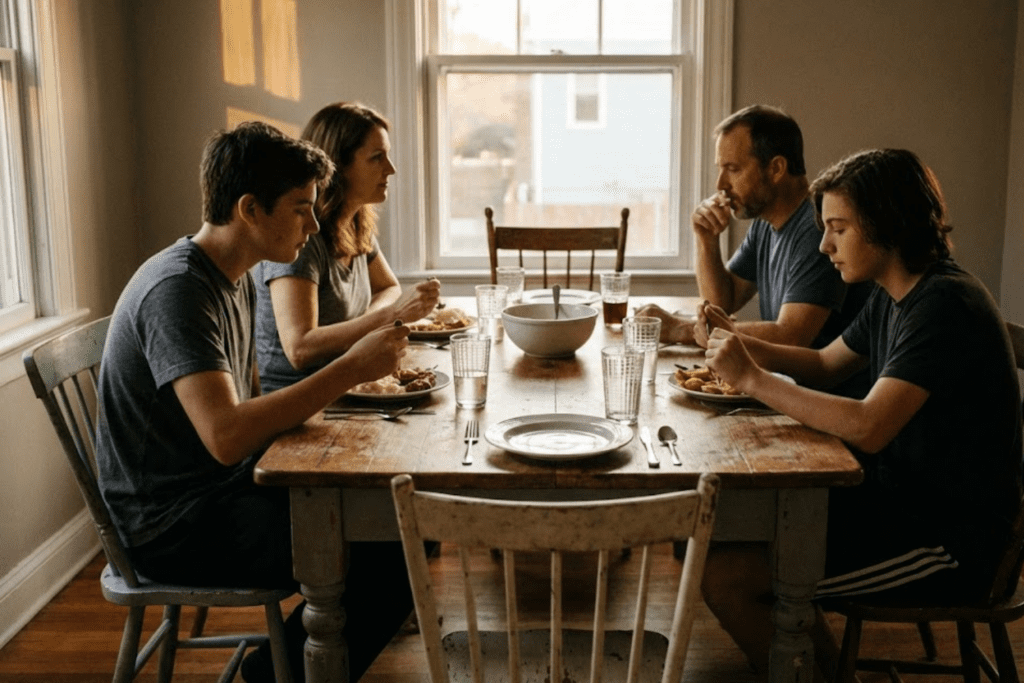 Not empty. Drew still talked nonstop. Caleb still argued about everything from politics to pasta sauce. Aaron still told jokes that made everyone groan. But there was a space at the table that didn’t belong to anyone else, a small gap in the rhythm we had built without realizing it.