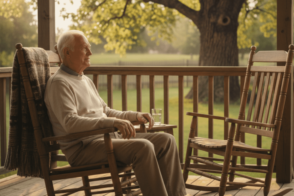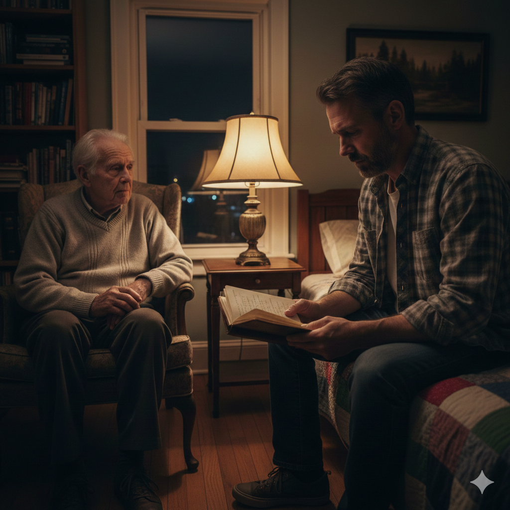 After the porch went quiet and the bluebird finally flew off into the trees, I stayed awake in my childhood bedroom, staring at the same ceiling I had stared at as a boy. The house sounded different now. Older. The walls clicked as they cooled. The floor sighed when someone shifted their weight. Even the silence felt fragile.