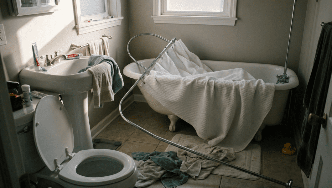 The officer, to his credit, kept it together. He explained calmly that the rod had fallen off its brackets, crashed down with theatrical enthusiasm, and wedged itself perfectly against the bathroom door. The “push back” I felt was gravity, physics, and my own imagination conspiring against me.