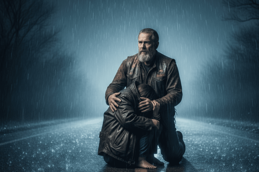 Rain hammered my helmet. My boots hit wet gravel as I stepped off the bike. I remember thinking how small she was, how wrong the world looked with a child alone on a highway at that hour. The road should have been empty. Children should have been sleeping. A night like that shouldn’t have held anything but truckers and exhaustion.