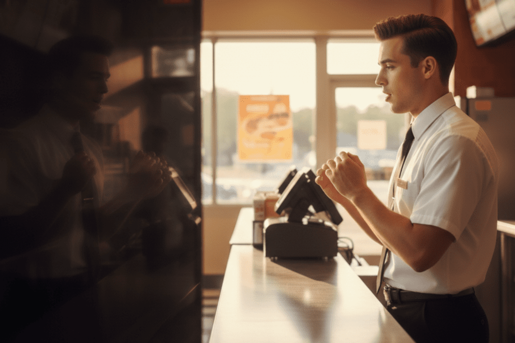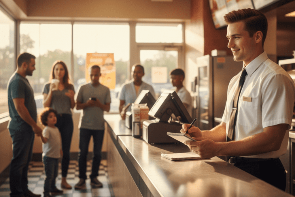 Jason was not alone in making this work. His coworkers supported the flow without hovering or rushing him. Someone in the back leaned forward to double-check an order without making a show of it. Another cashier jumped in to handle mobile pickups so Jason could focus.