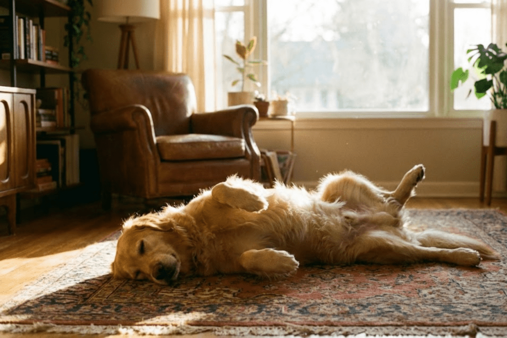Hazel was sprawled across the living room rug, upside down exactly as described, paws curled in that ridiculous, endearing way that made her look like a stuffed animal someone had tossed carelessly on the floor. Sunlight from the window lit her fur so brightly it almost glowed.