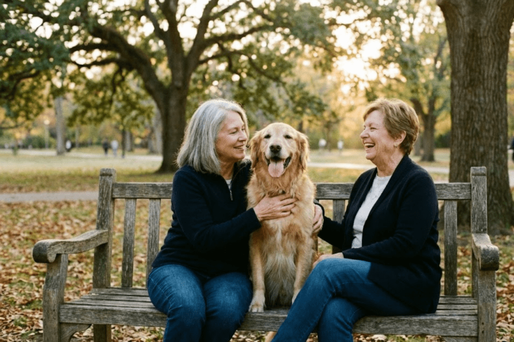 We sat together for nearly an hour. No rush. No awkwardness. Just quiet companionship anchored by a golden dog moving back and forth between us like a living thread.