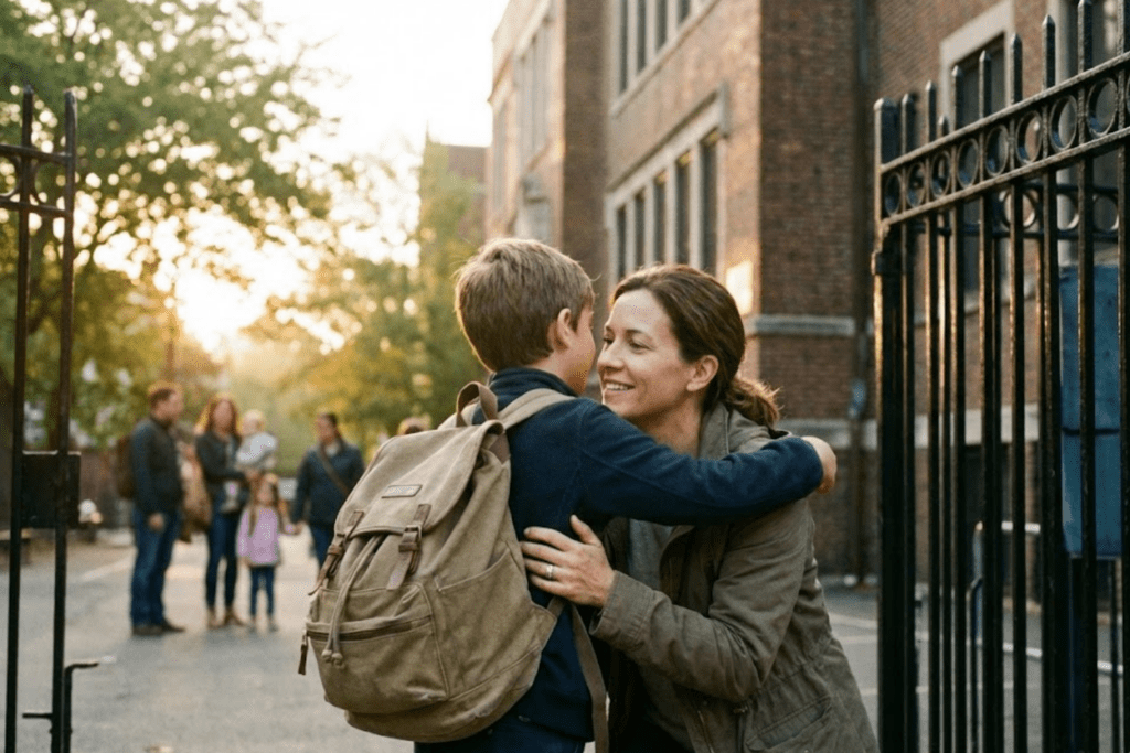 At school drop-off, he ran to his classroom door, then stopped, turned, and ran back. He wrapped his arms around my waist and held on longer than usual.