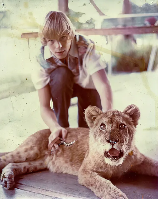 “My father and his pet lion Priscilla, California 1970s”. (Photo credit: spencehord).