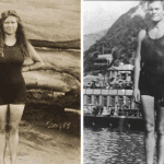 Swimming evolved throughout this period from being more about joy than health. Early in the 1900s, women’s swimming suits were heavy with high necks, long sleeves, skirts, and pants.